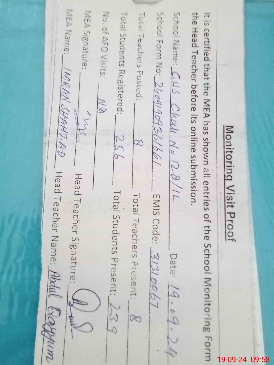 | EMIS Code: 31310067 | Name of School: GHS CHAK NO 128/1-L | |||