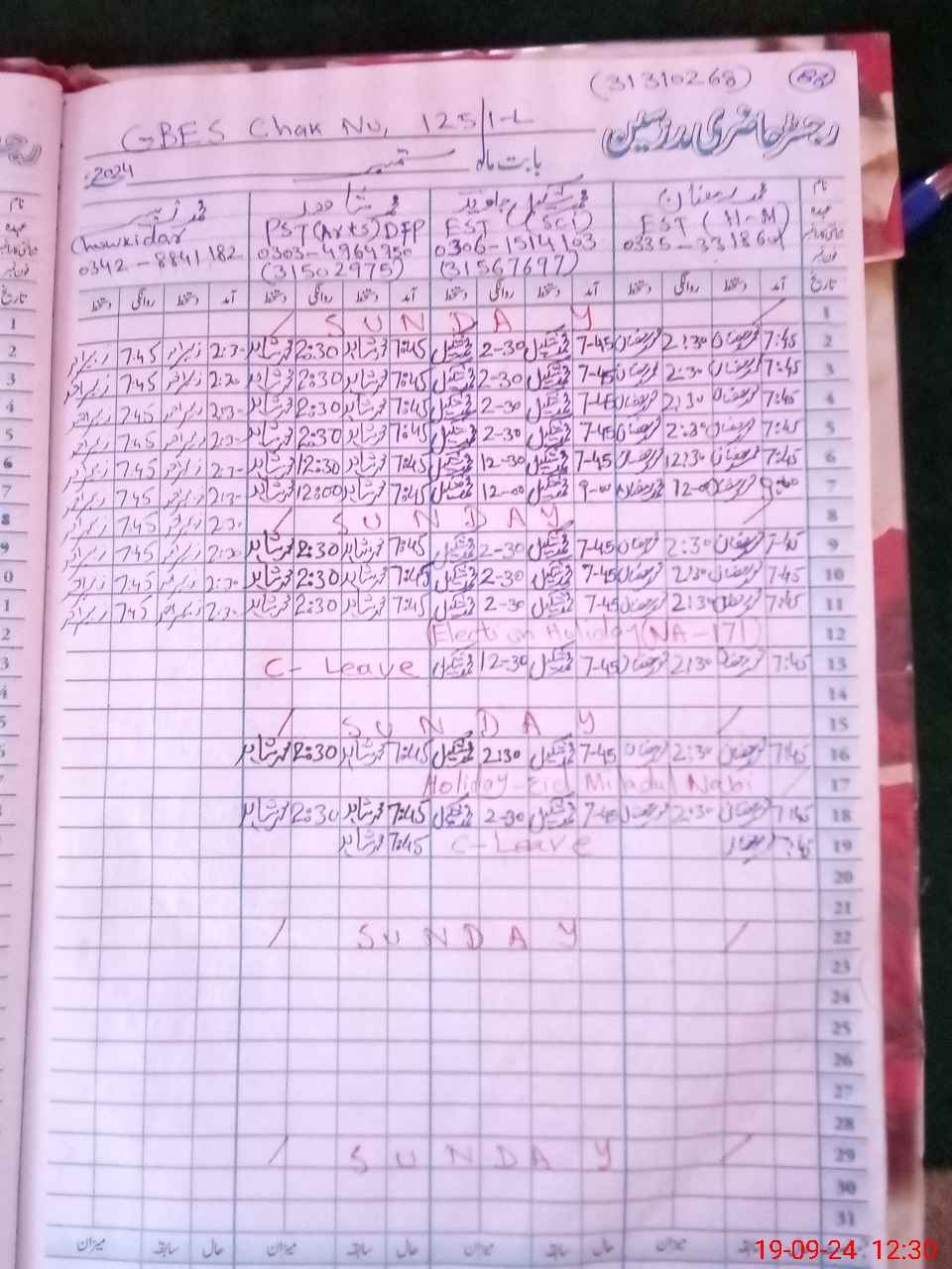 | CNIC | Full Name | Designation | R/C | Absence During Last Calender Month |