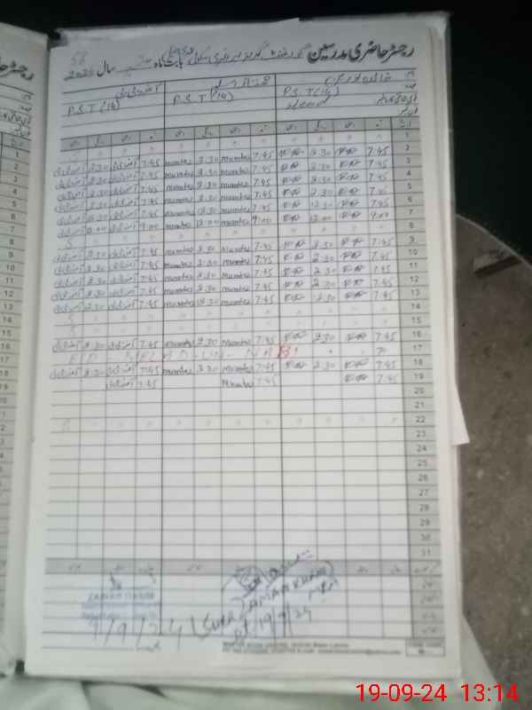 | CNIC | Full Name | Designation | R/C | Absence During Last Calender Month |