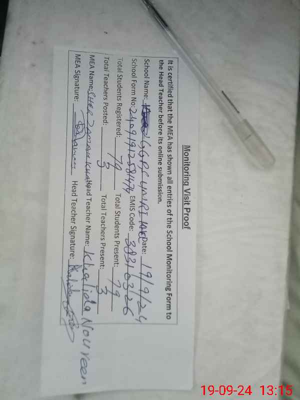 | Attendance Register | Head Teacher | MEA with School | Visit Proof |