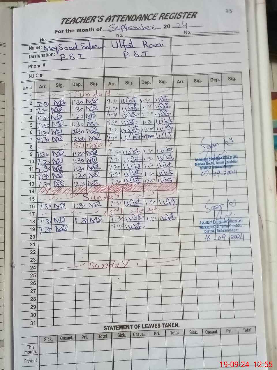 | Name: Ma**** Sa**** Designation: (School Headmaster's/Headmistress's) PST Phone/Cell Number: 03**** |