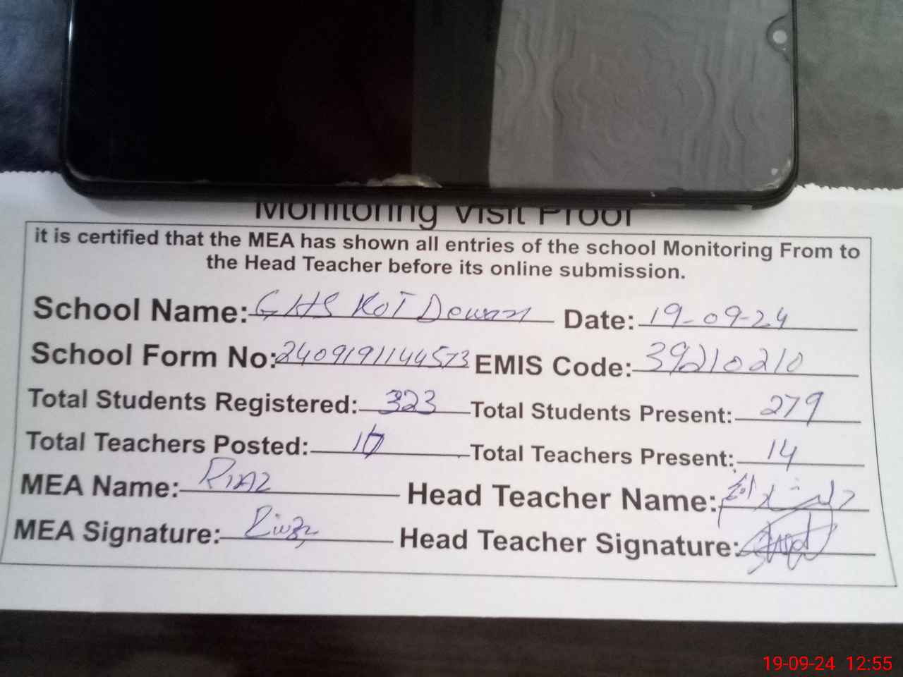 | EMIS Code: 39210210 | Name of School: GHS KOT DEWAN PO PAKPATTAN | |||