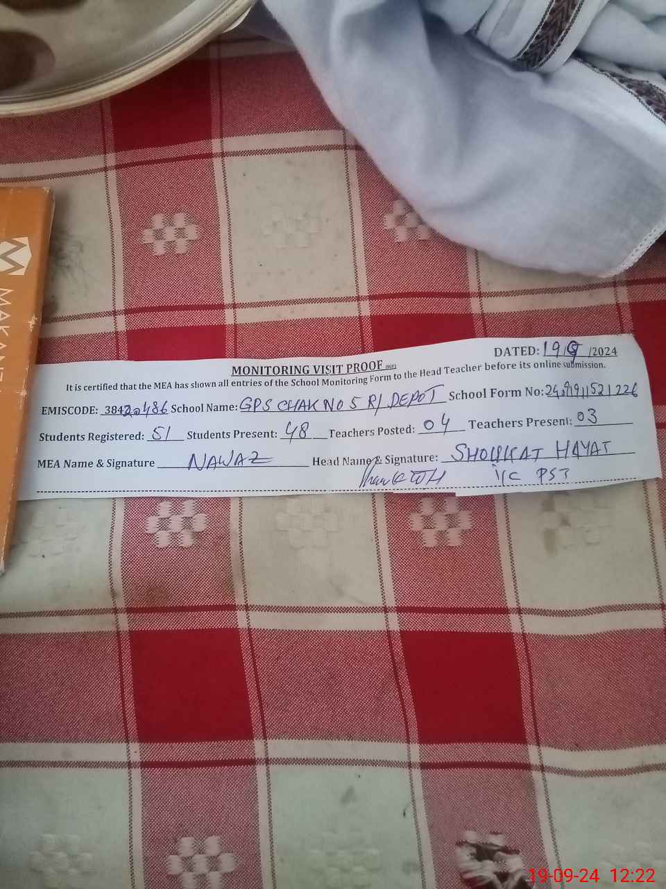 | EMIS Code: 38420486 | Name of School: GPS CHAK NO.5 REMOUNT DEPOT | |||