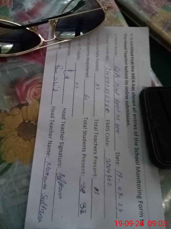 | Attendance Register | Head Teacher | MEA with School | Visit Proof |