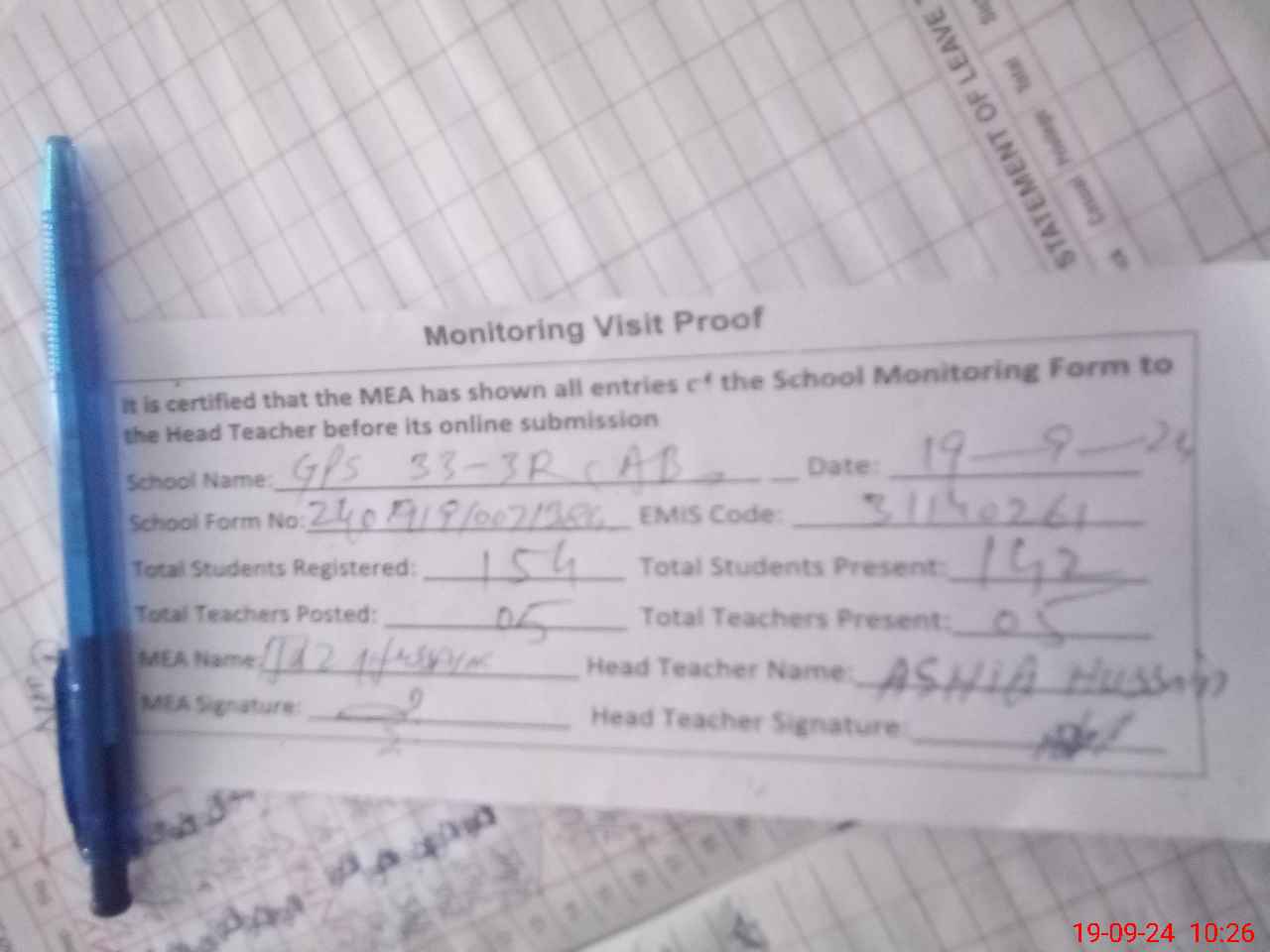 | EMIS Code: 31140261 | Name of School: GPS CHAK NO.33/3-R AB | |||