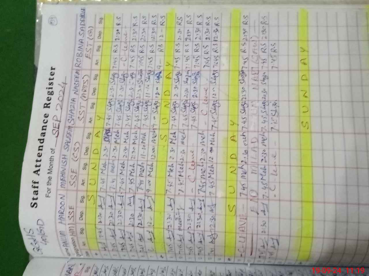 | CNIC | Full Name | Designation | R/C | Absence During Last Calender Month |