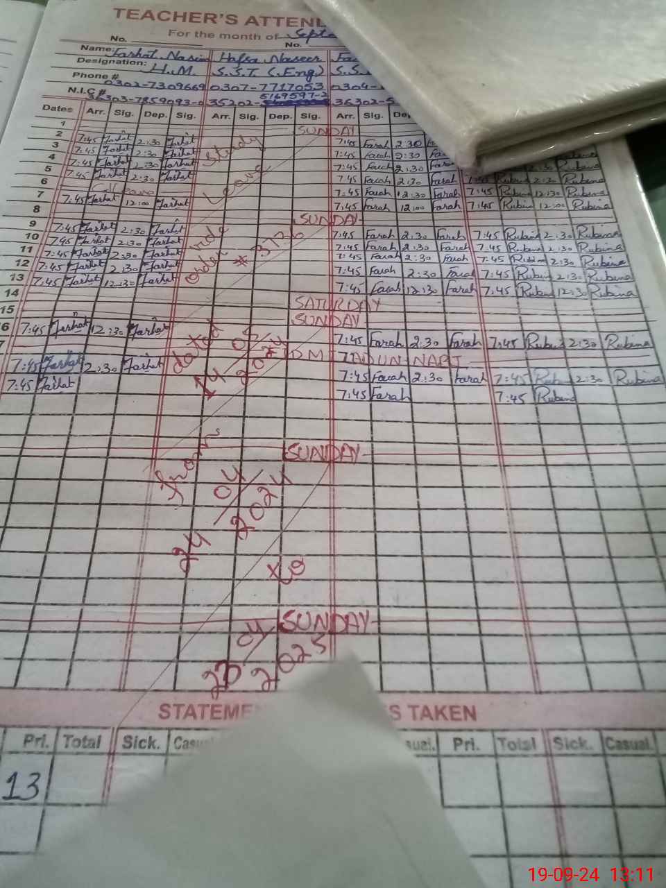 | Name: Fa**** Na**** Designation: (School Headmaster's/Headmistress's) Head Misstress Phone/Cell Number: 03**** |