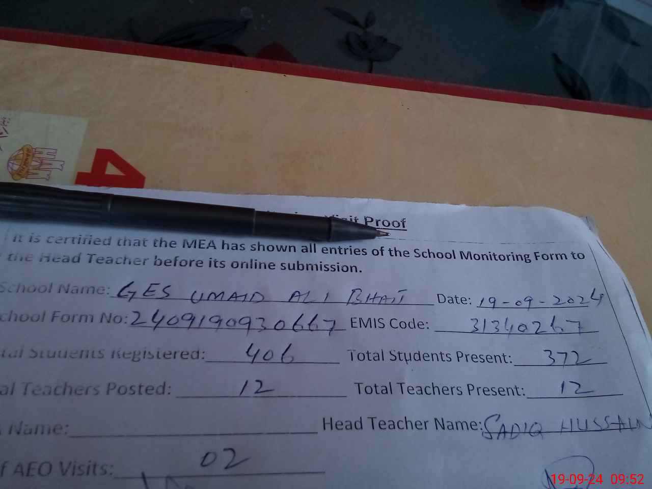 | EMIS Code: 31340267 | Name of School: GES UMAID ALI BHAIT | |||