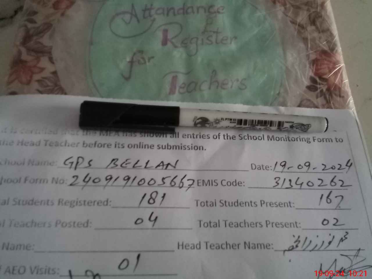 | Attendance Register | Head Teacher | MEA with School | Visit Proof |