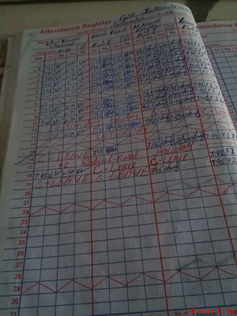 | CNIC | Full Name | Designation | R/C | Absence During Last Calender Month |