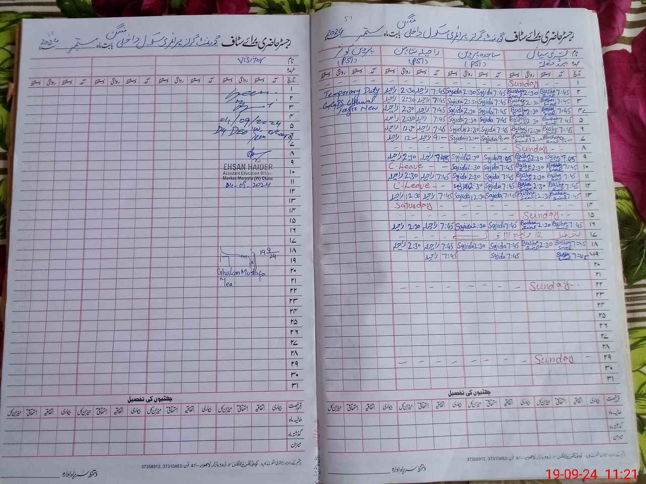 | CNIC | Full Name | Designation | R/C | Absence During Last Calender Month |