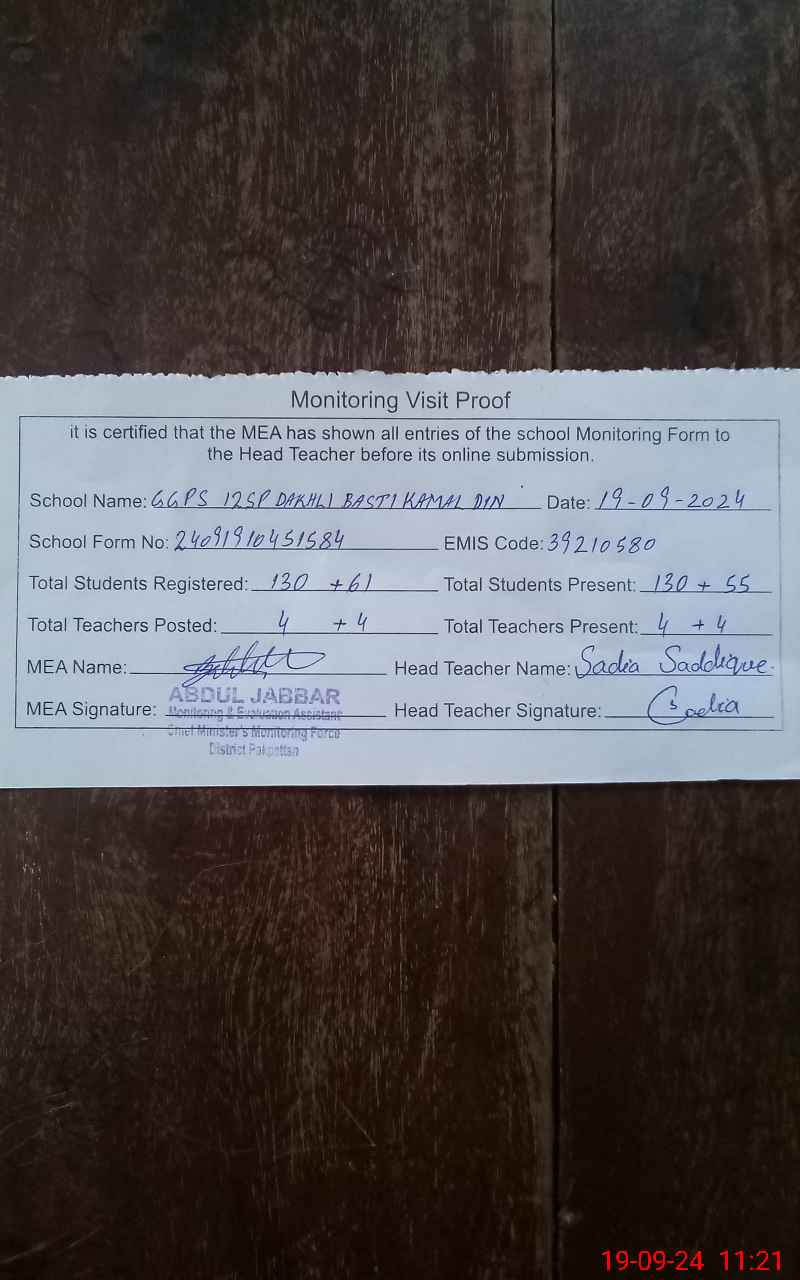 | EMIS Code: 39210580 | Name of School: GGPS 12 SP DAKHLI (BASTI KAMAL DIN) | |||