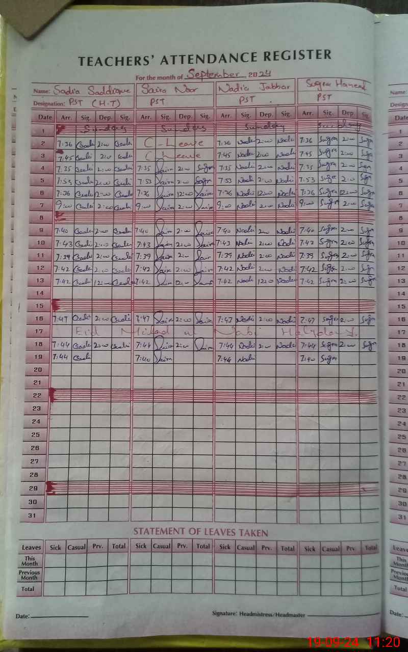 | Leave | Duty | Absent | Maternity | Medical | Ex- Pak |