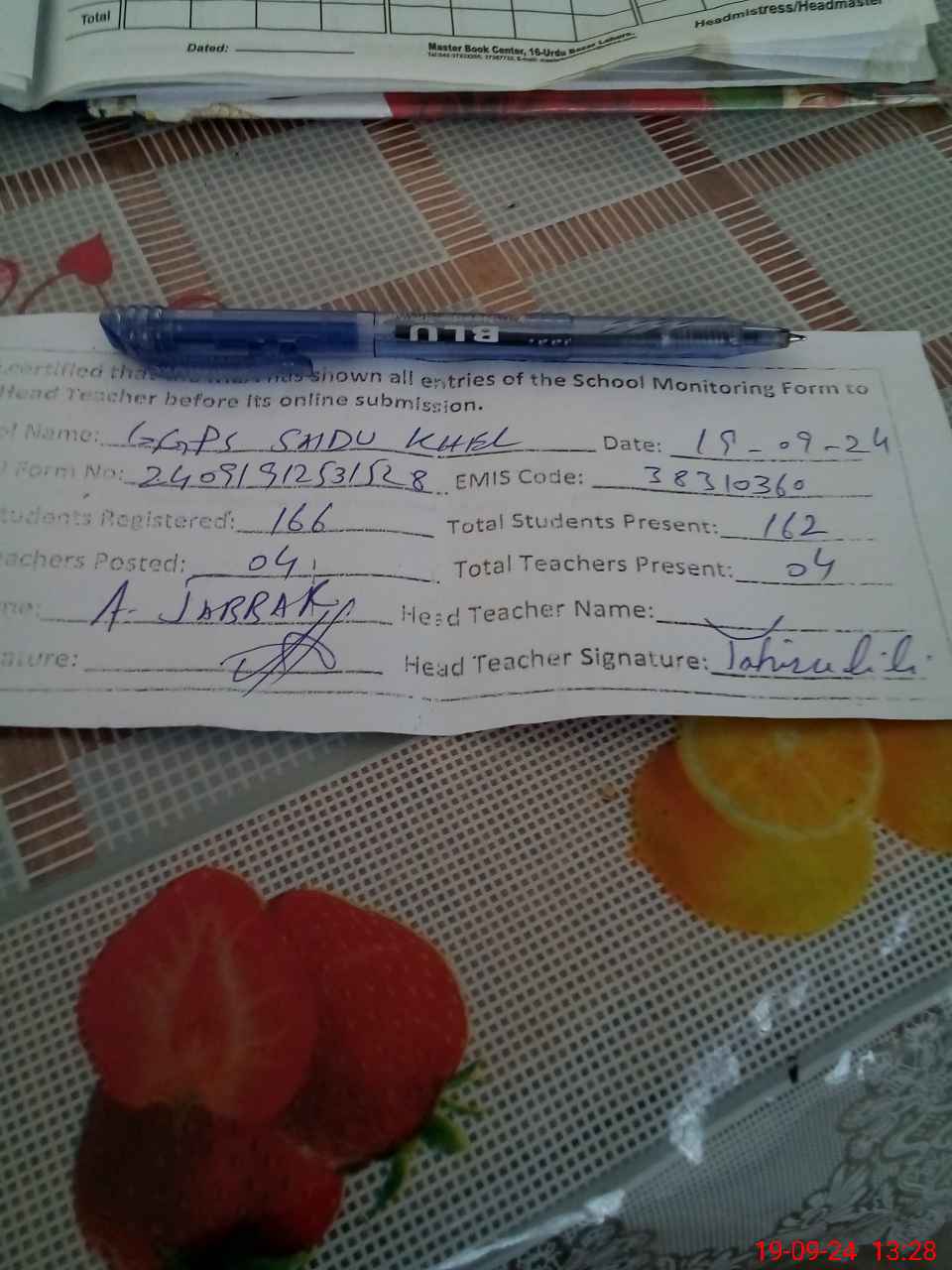 | EMIS Code: 38310360 | Name of School: GGPS SAIDU KHEL | |||