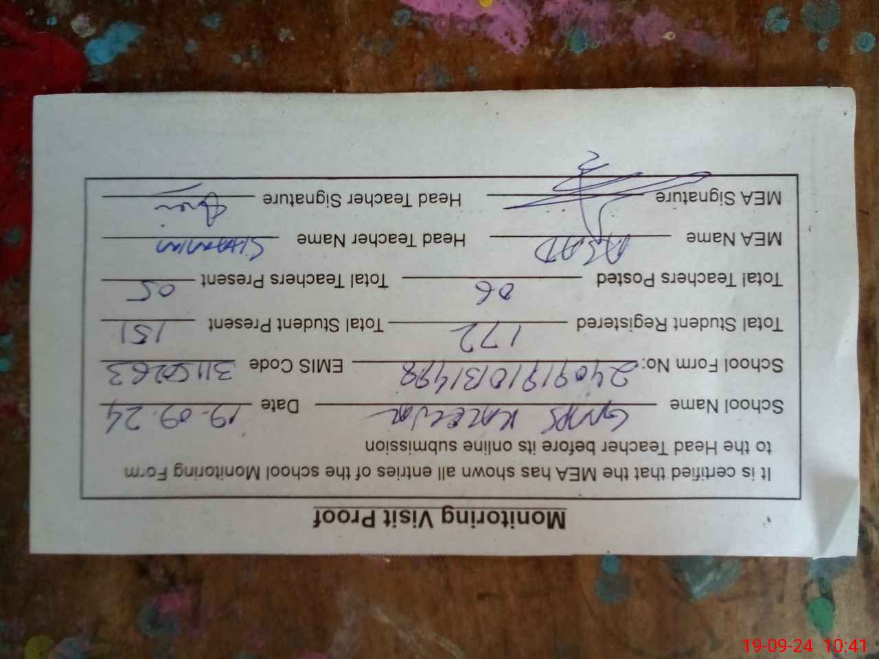 | EMIS Code: 31150263 | Name of School: GMPS KALE WAL | |||