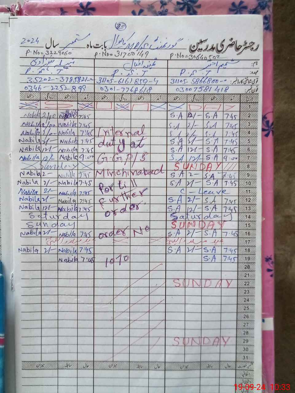 | Name: SA**** IQ**** Designation: (School Headmaster's/Headmistress's) PST Phone/Cell Number: 03**** |