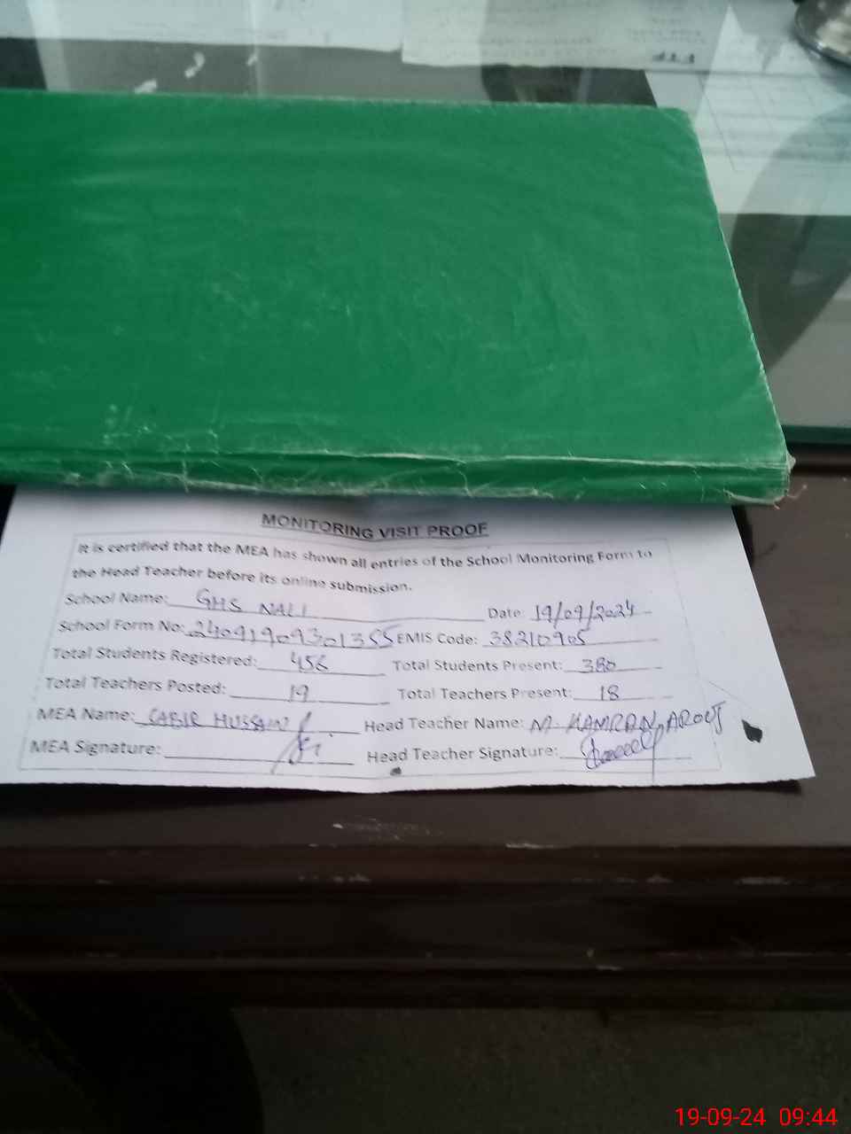 | Attendance Register | Head Teacher | MEA with School | Visit Proof |