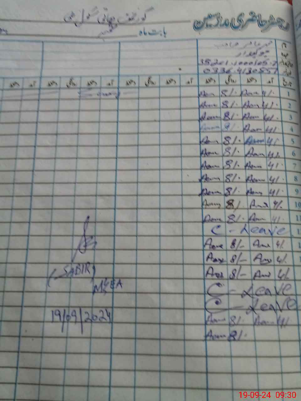 | CNIC | Full Name | Designation | R/C | Absence during last cal. month |