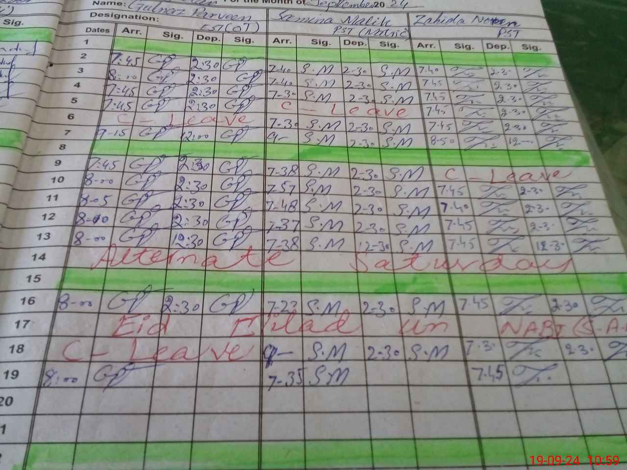 | CNIC | Full Name | Designation | R/C | Absence During Last Calender Month |