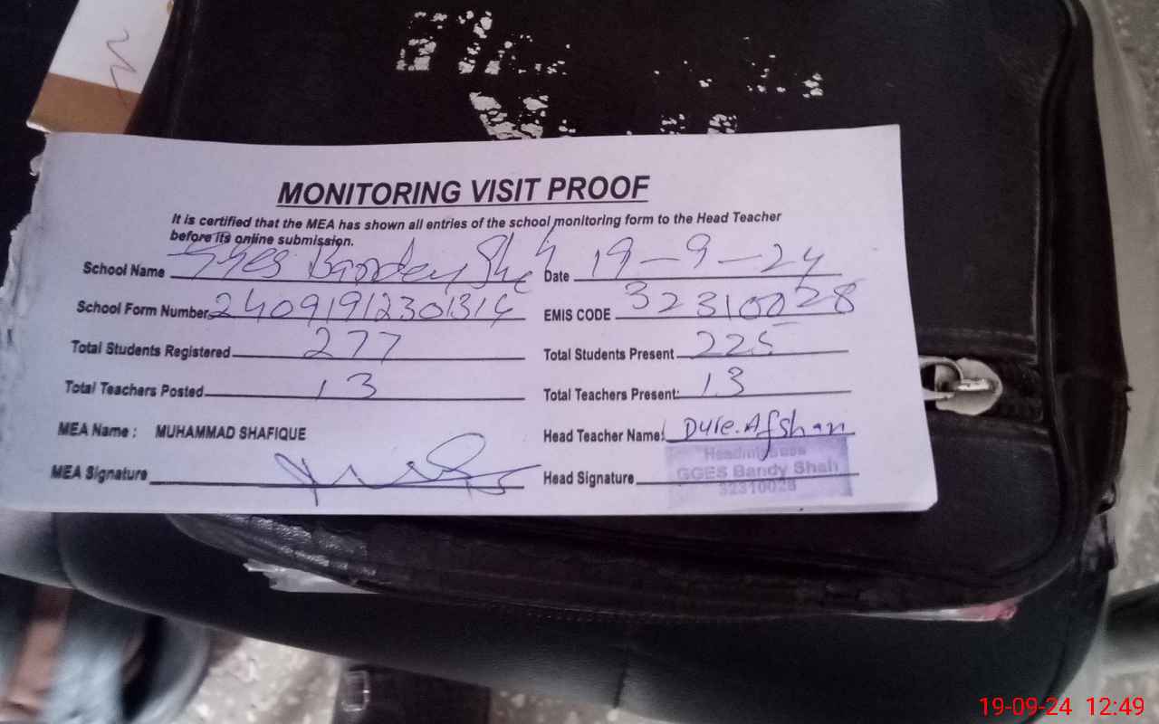 | EMIS Code: 32310028 | Name of School: GGES BANDAY SHAH | |||