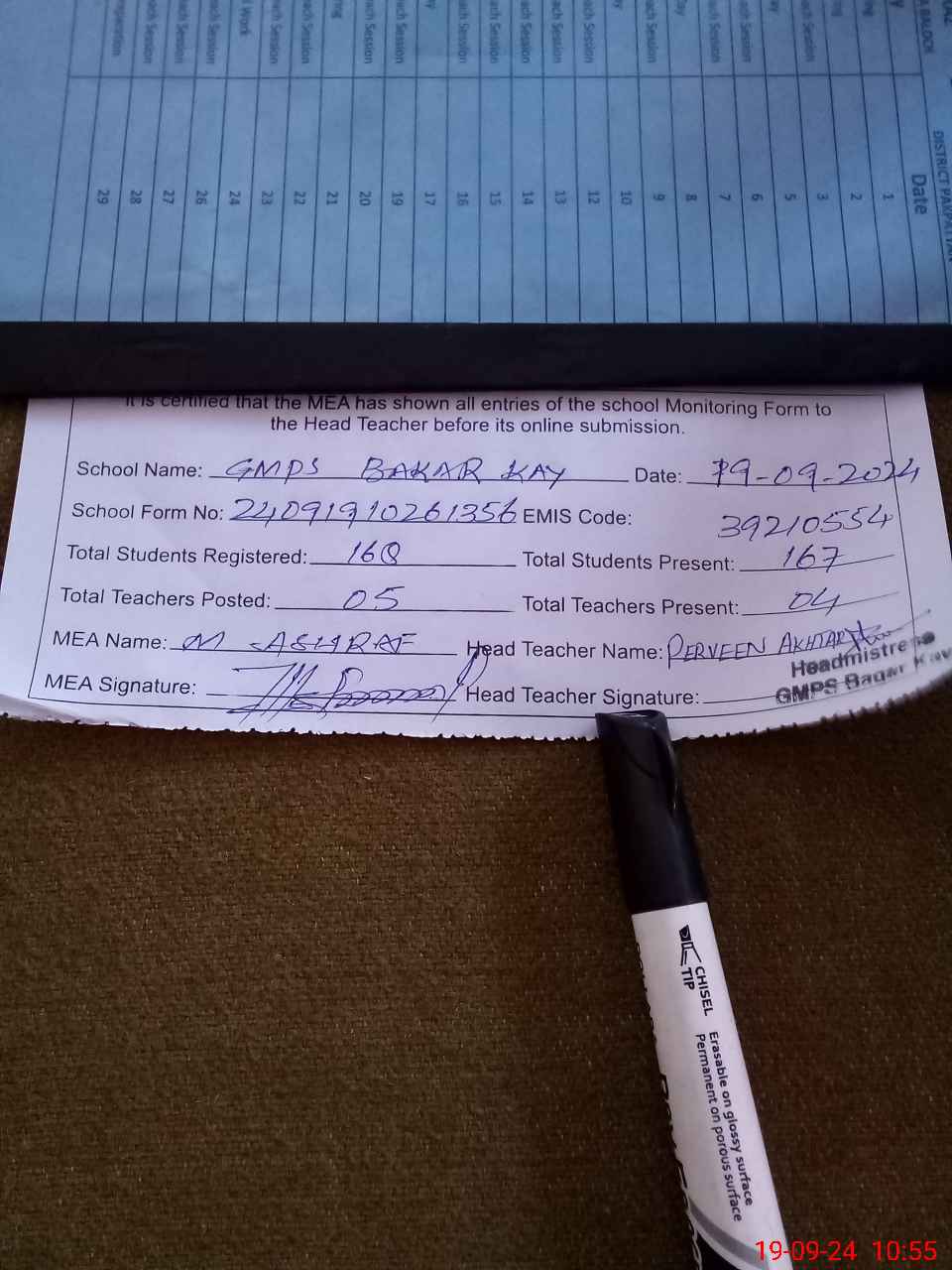 | Name: PA**** AK**** Designation: (School Headmaster's/Headmistress's) PST Phone/Cell Number: 03**** |