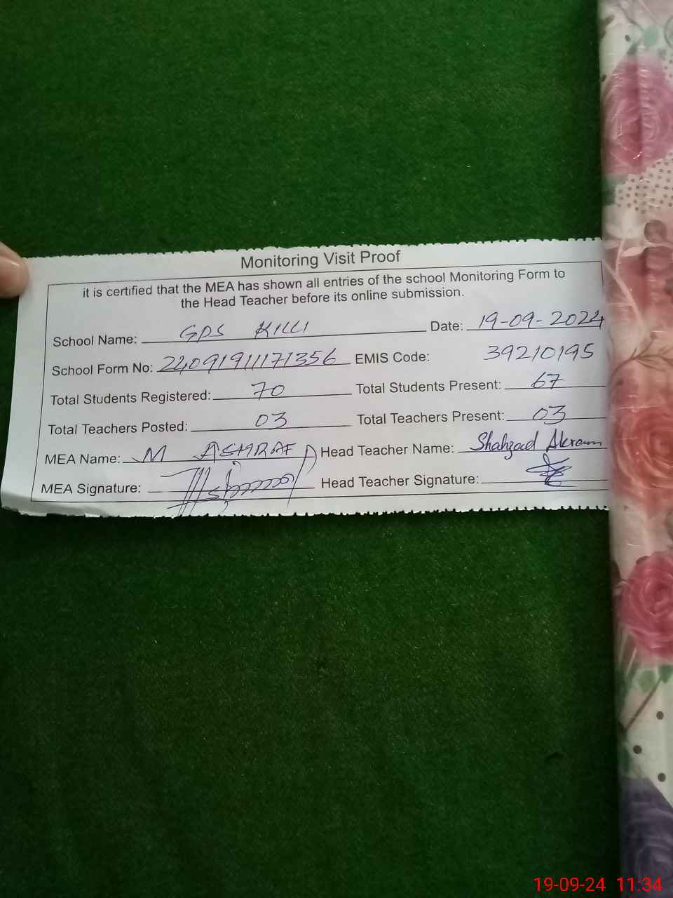| EMIS Code: 39210195 | Name of School: GPS KILLI PO PAKPATTAN | |||