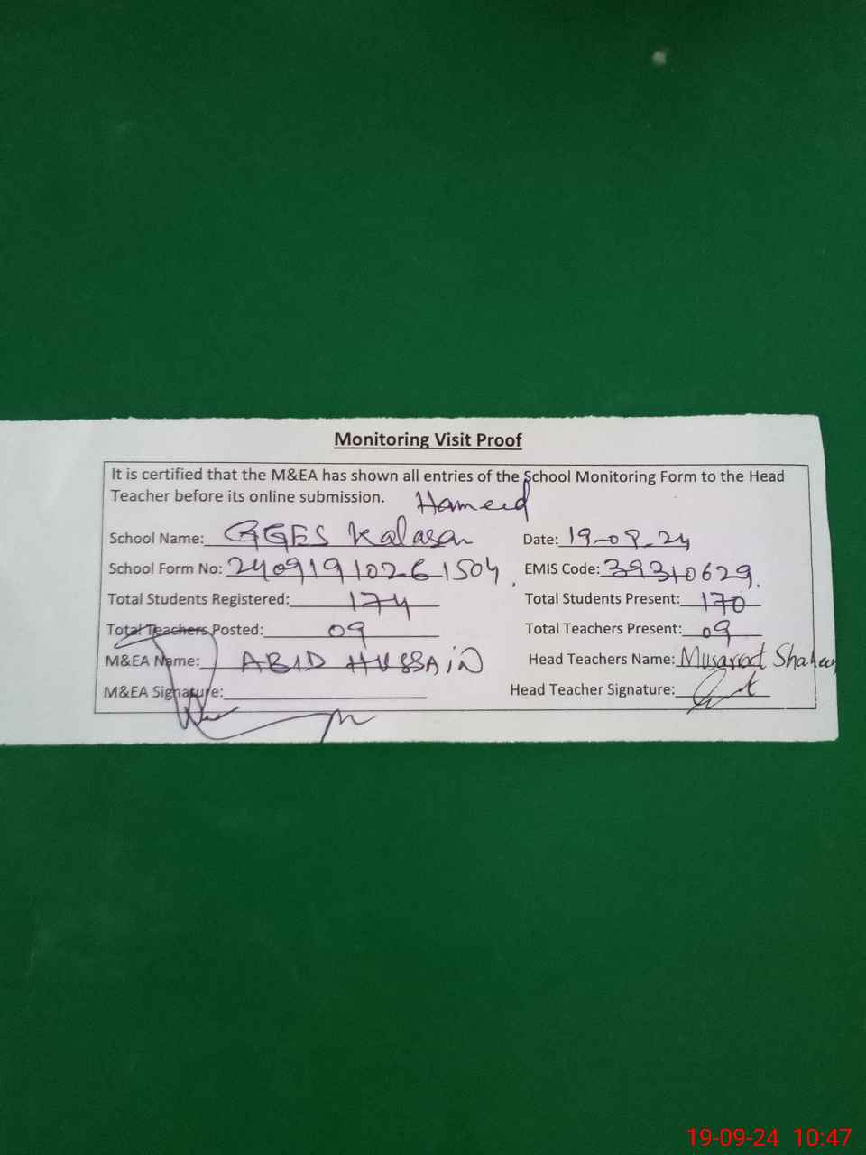 | EMIS Code: 39310629 | Name of School: GGES KALASAN HAMEED | |||