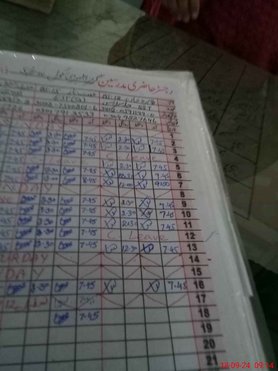 | Name: Aq**** Sh**** Designation: (School Headmaster's/Headmistress's) Est Eng Phone/Cell Number: 03**** |