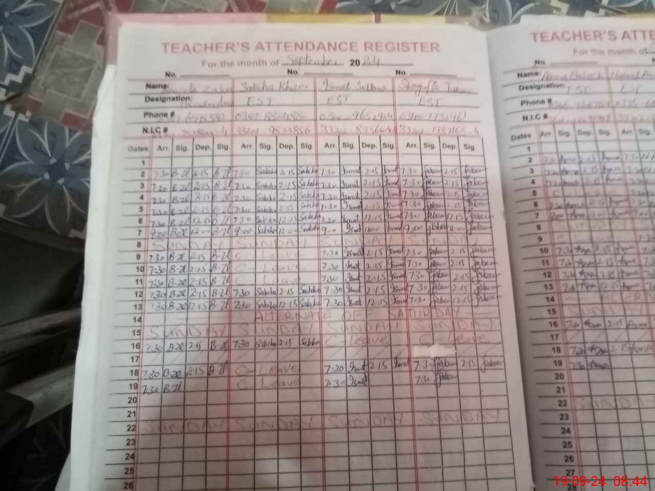 | CNIC | Full Name | Designation | R/C | Absence During Last Calender Month |