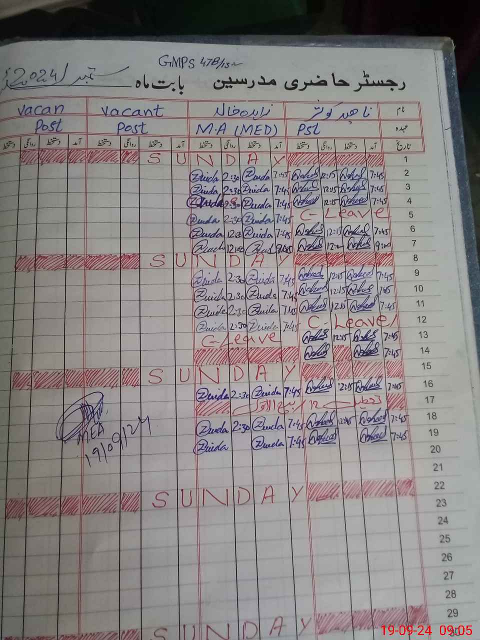 | CNIC | Full Name | Designation | R/C | Absence During Last Calender Month |
