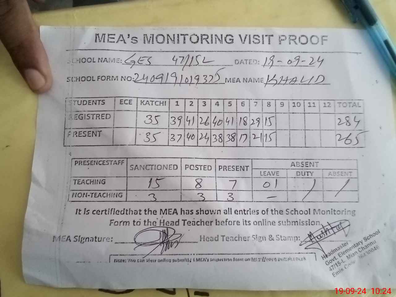 | EMIS Code: 36430046 | Name of School: GES 47/15-L, P/O 124/15-L, MIAN CHANNU | |||