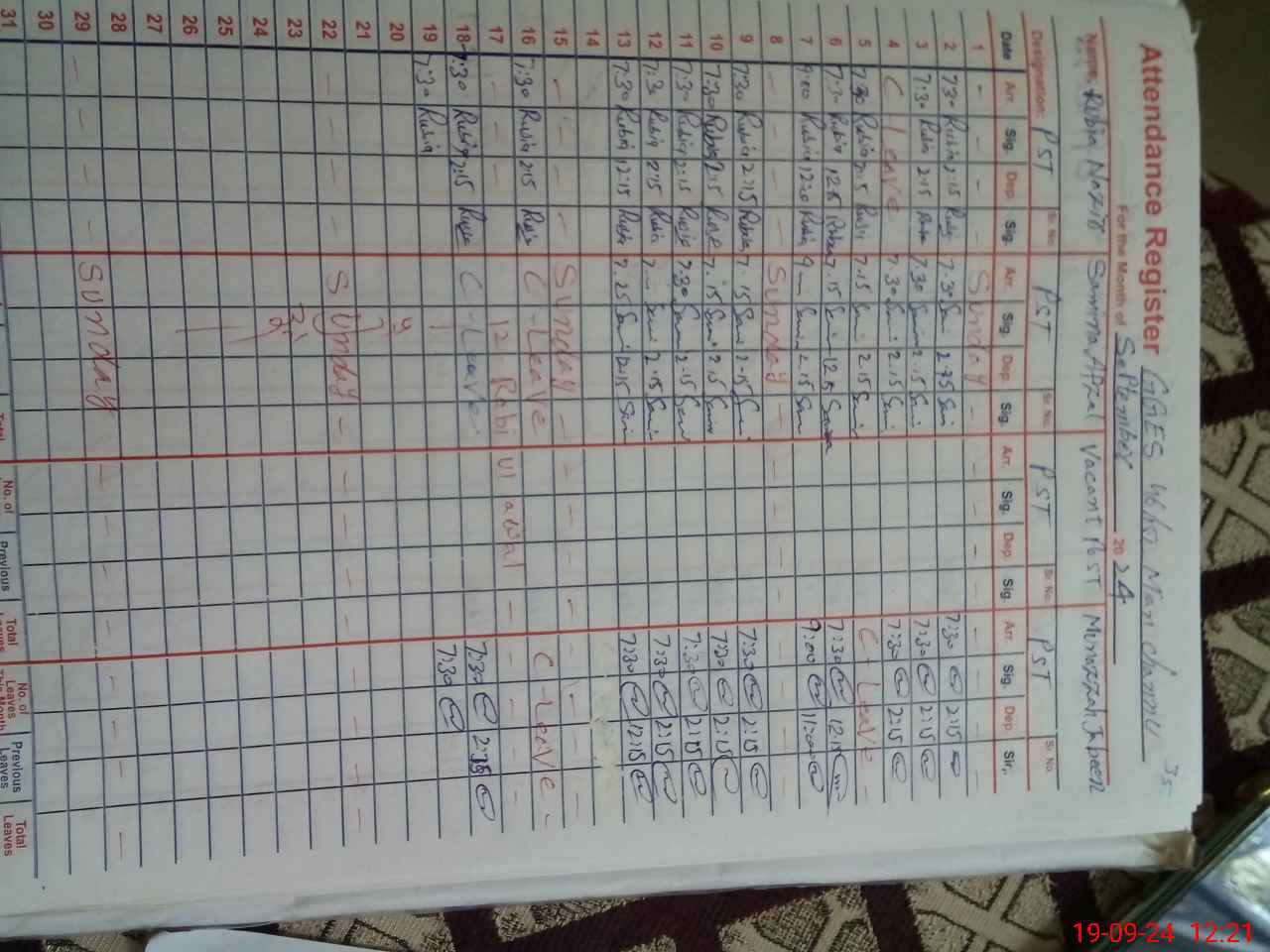| CNIC | Full Name | Designation | R/C | Absence During Last Calender Month |