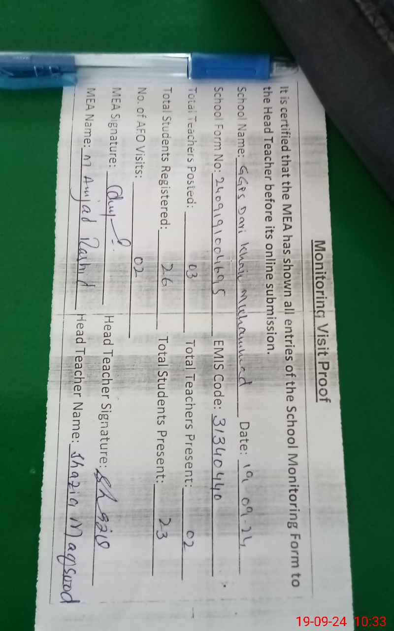 | EMIS Code: 31340440 | Name of School: GGPS DARI KHAIR MUHAMMAD | |||