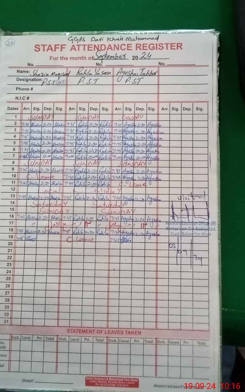 | District: RAHIMYAR KHAN | Tehsil: SADIQABAD | Markaz: ILLAM DIN -FEMALE | Level: Primary | |