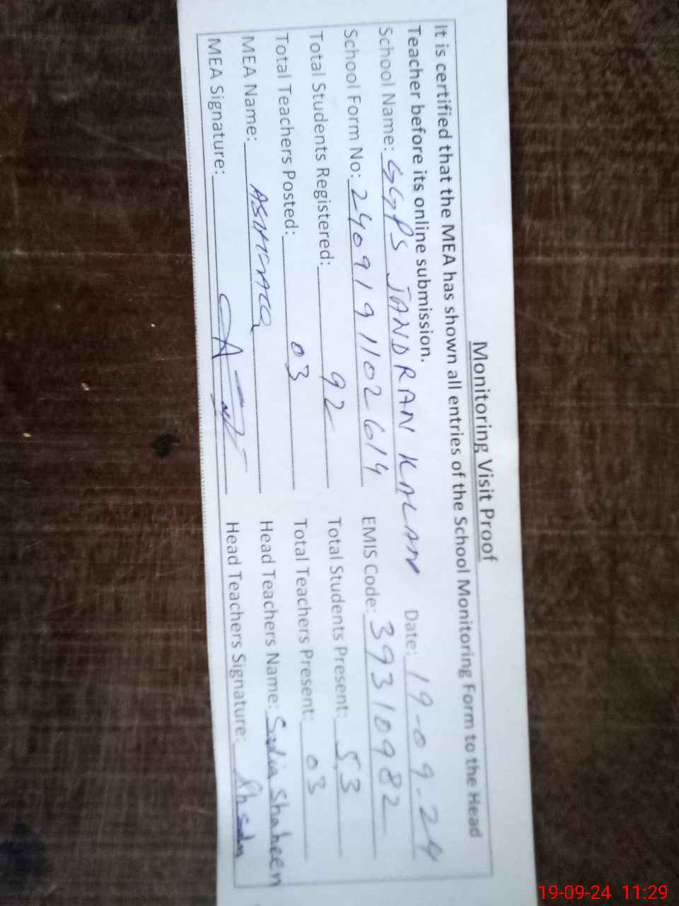 | EMIS Code: 39310982 | Name of School: GGPS JANDARAN KALAN | |||