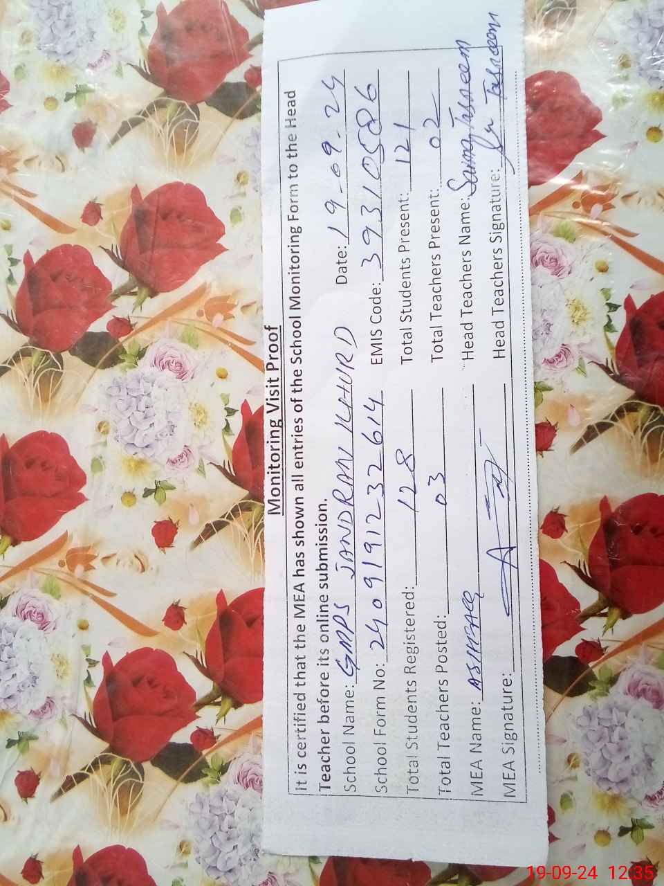 | EMIS Code: 39310586 | Name of School: GMPS JANDRAN KHURD | |||