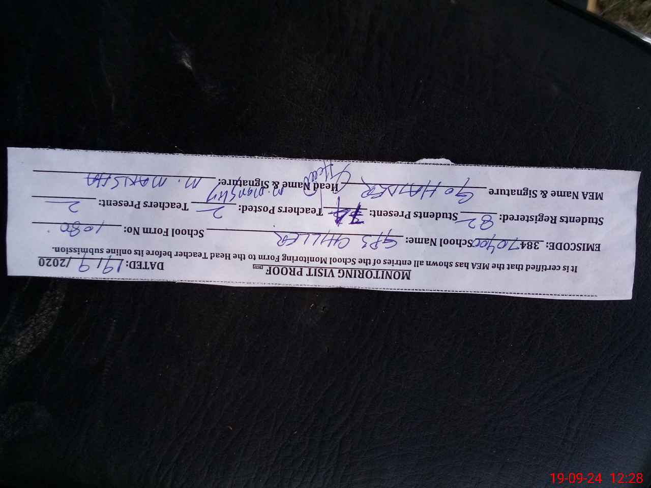 | Name: MU**** MA**** Designation: (School Headmaster's/Headmistress's) PTC/JV Phone/Cell Number: 03**** |