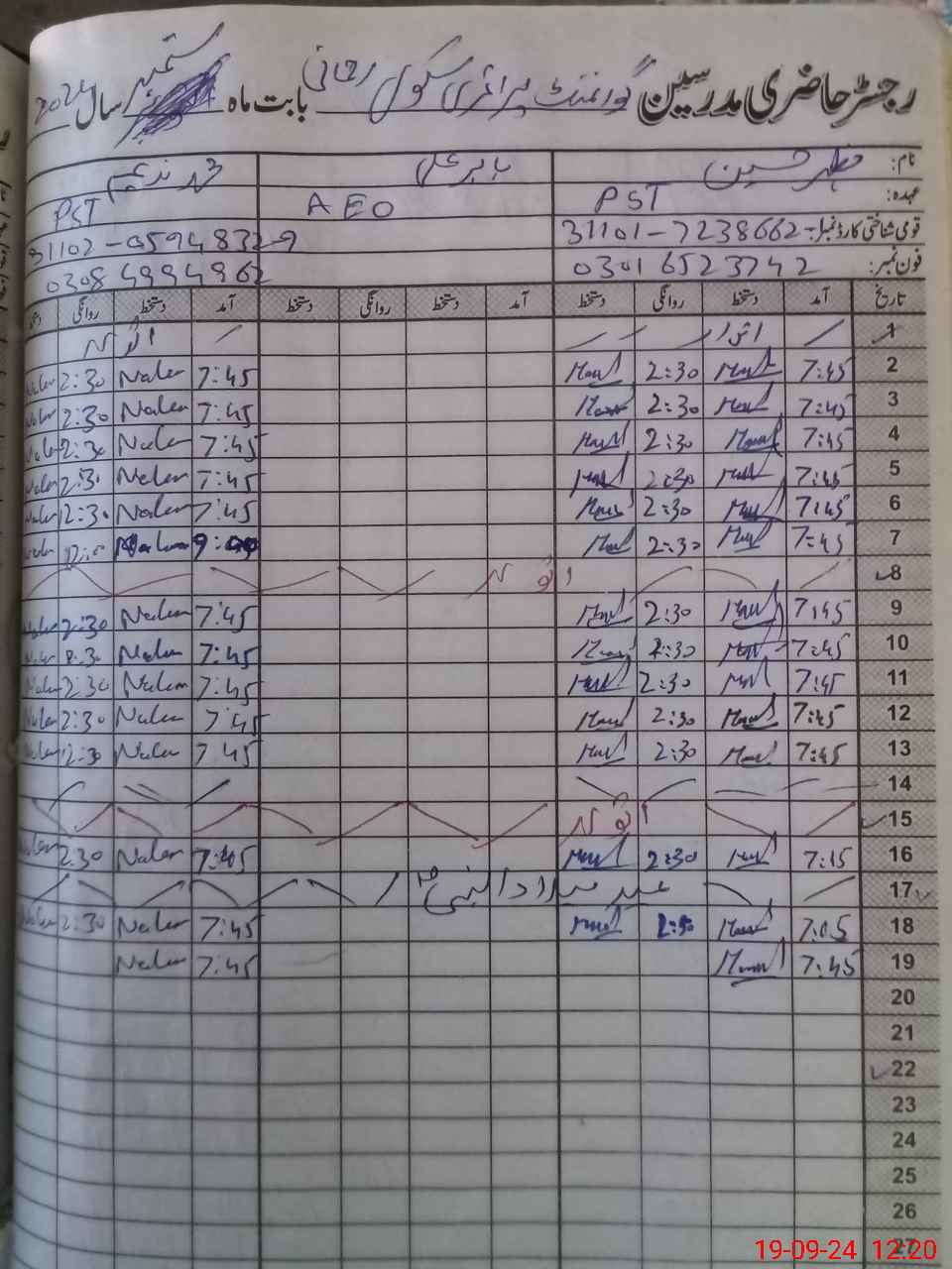 | Name: MA**** Hu**** Designation: (School Headmaster's/Headmistress's) PST Phone/Cell Number: 03**** |