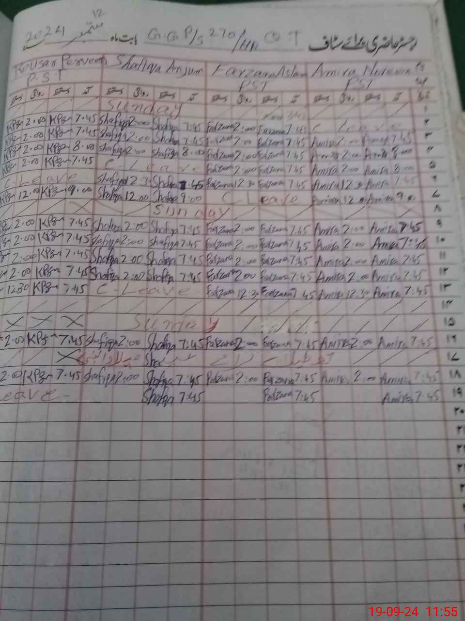 | Leave | Duty | Absent | Maternity | Medical | Ex- Pak |