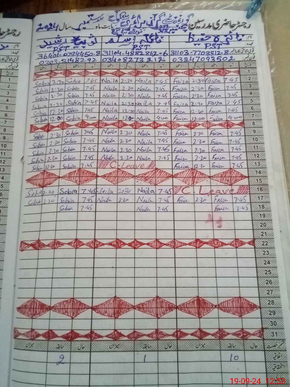 | 31**** | Mu**** Il**** | NAIB QASID | Regular | 0 | 0 | 31 | 0 | 0 | 0 | 0 | 0 | 0 | Absent (Un-Authorized) |