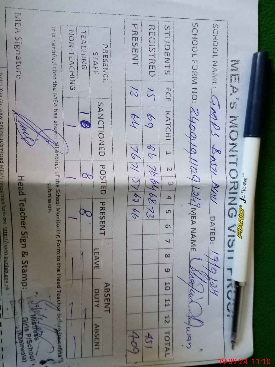| Certified that this School was Inspected by the Undersigned MEA/DMO Today and the Information Stated Above is as Per Record. | |||||
