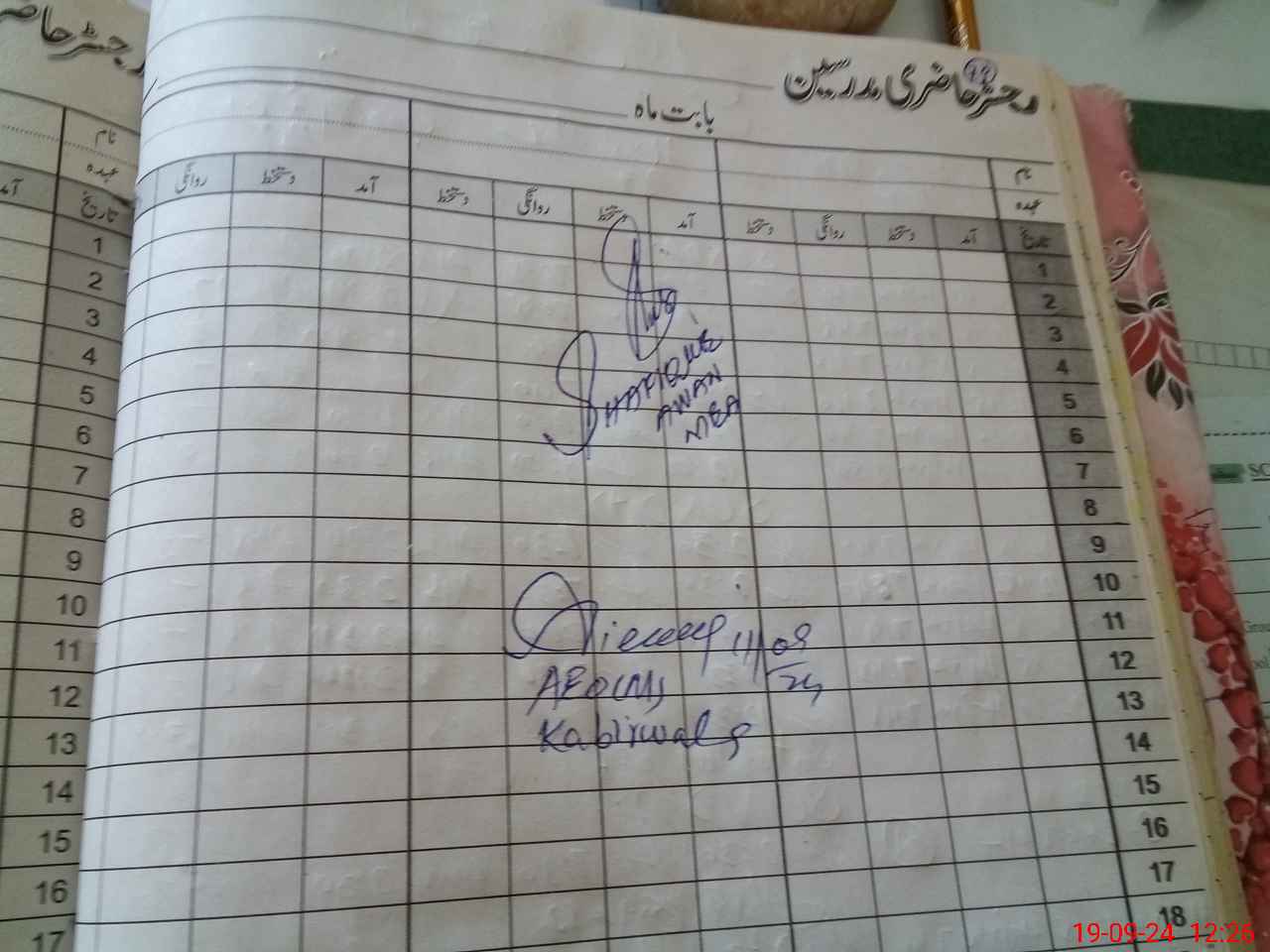 | CNIC | Full Name | Designation | R/C | Absence During Last Calender Month |