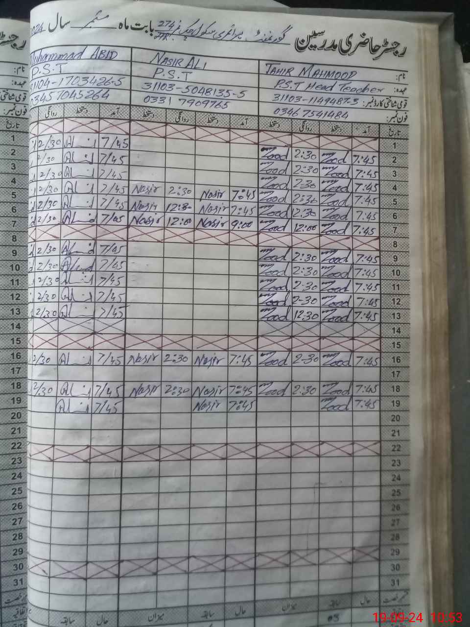 | CNIC | Full Name | Designation | R/C | Absence During Last Calender Month |