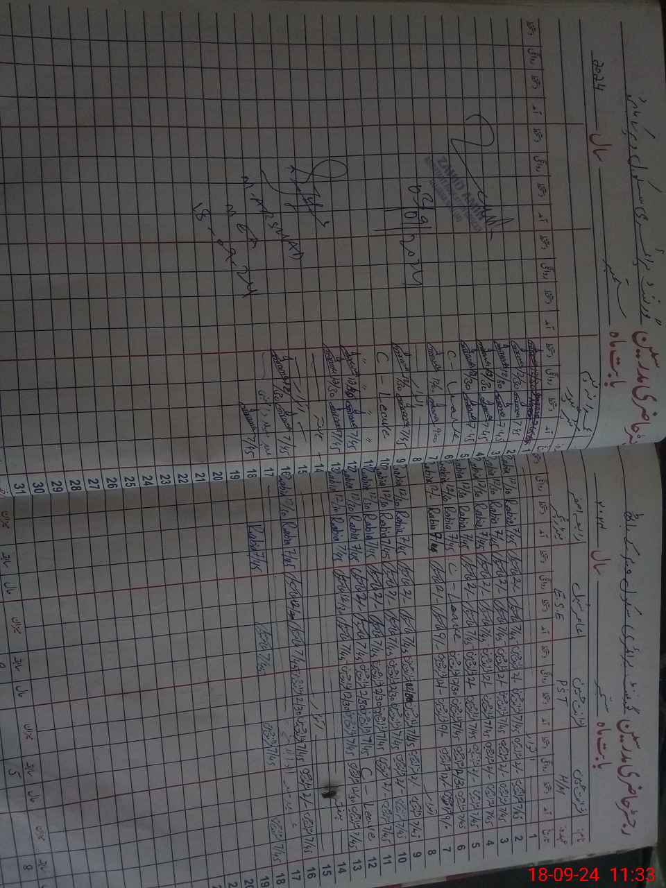 | CNIC | Full Name | Designation | R/C | Absence During Last Calender Month |