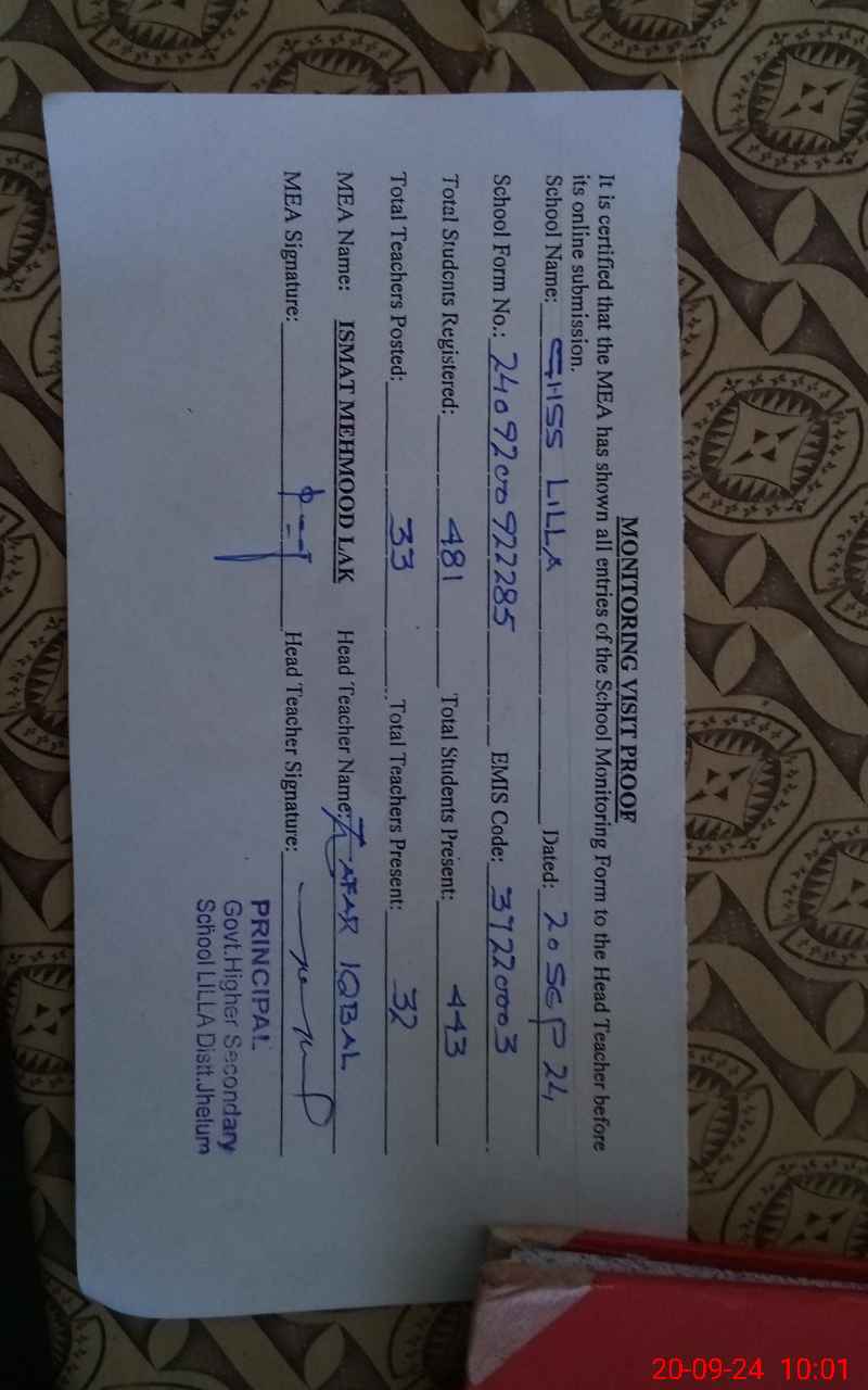 | Name: ZA**** IQ**** Designation: (School Headmaster's/Headmistress's) HM Phone/Cell Number: 03**** |
