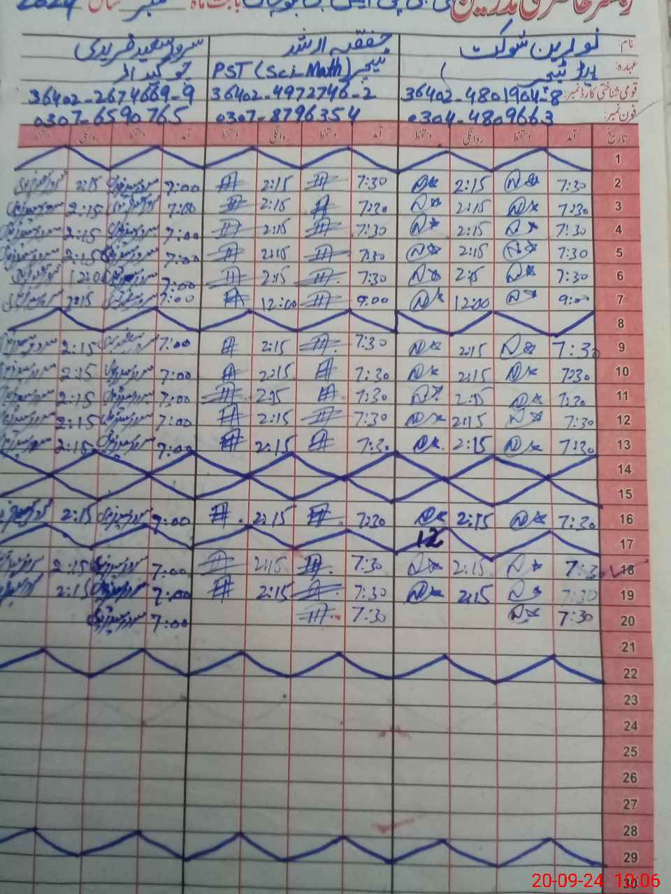 | Name: No**** sh**** Designation: (School Headmaster's/Headmistress's) PST Phone/Cell Number: 03**** |