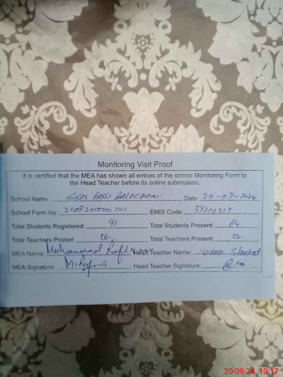 | EMIS Code: 39210317 | Name of School: GGPS BASTI BALOCHAN P/O MALKA HANS | |||