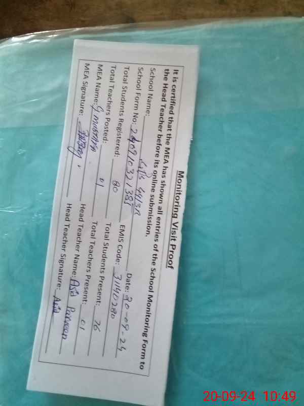 | Certified that this School was Inspected by the Undersigned MEA/DMO Today and the Information Stated Above is as Per Record. | |||||