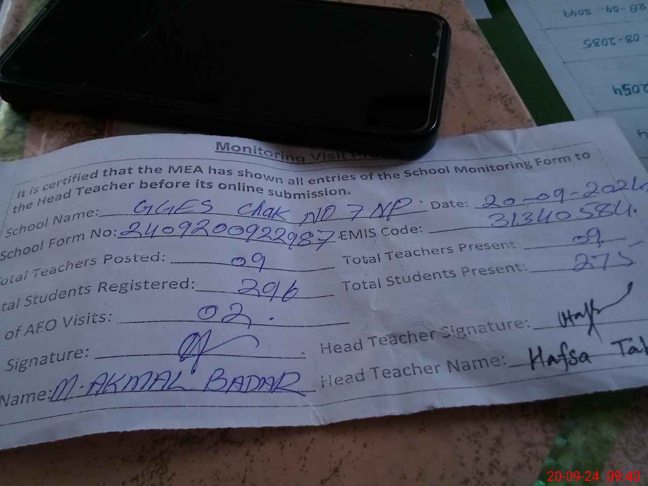 | EMIS Code: 31340584 | Name of School: GGES CHAK NO.7/NP | |||