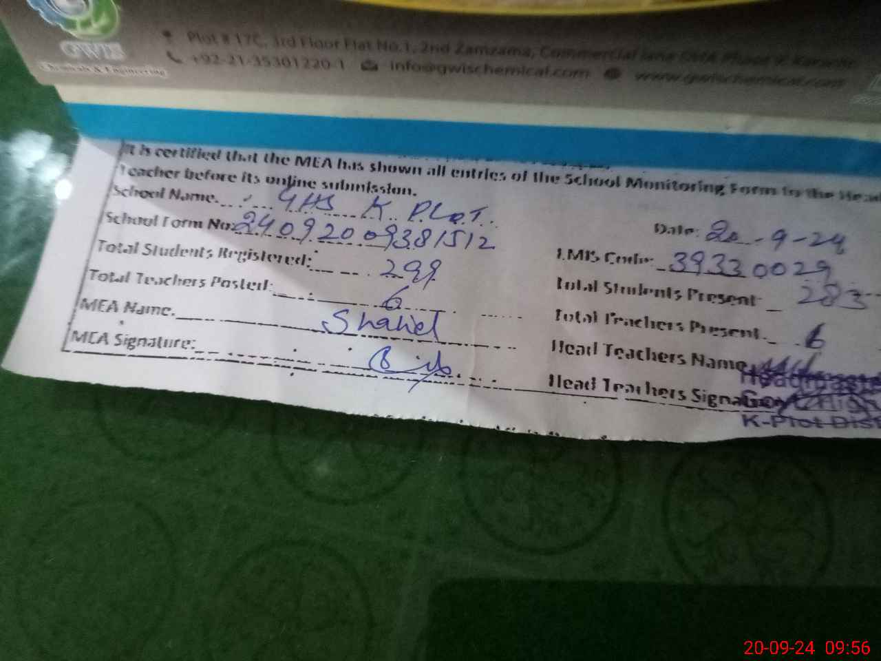| EMIS Code: 39330029 | Name of School: GHS K PLOT | |||